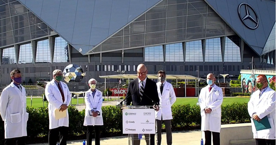 Children's Healthcare of Atlanta, Emory, Grady, Northeast Georgia, Piedmont and Wellstar were all represented Thursday at a joint press conference outside Mercedes-Benz Stadium in Atlanta.