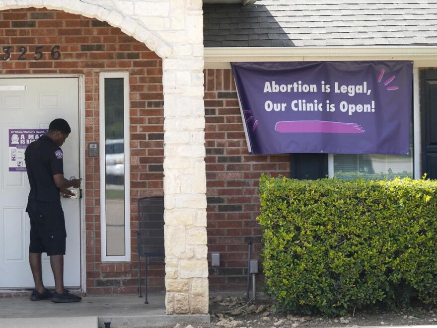In this Sept. 1, 2021 file photo, a security guard opens the door to the Whole Women's Health Clinic in Fort Worth, Texas. Even before a strict abortion ban took effect in Texas this week, clinics in neighboring states were fielding more and more calls from women desperate for options. The Texas law, allowed to stand in a decision Thursday, Sept. 2, 2021 by the U.S. Supreme Court, bans abortions after a fetal heartbeat can be detected, typically around six weeks. Credit: LM Otero, AP
